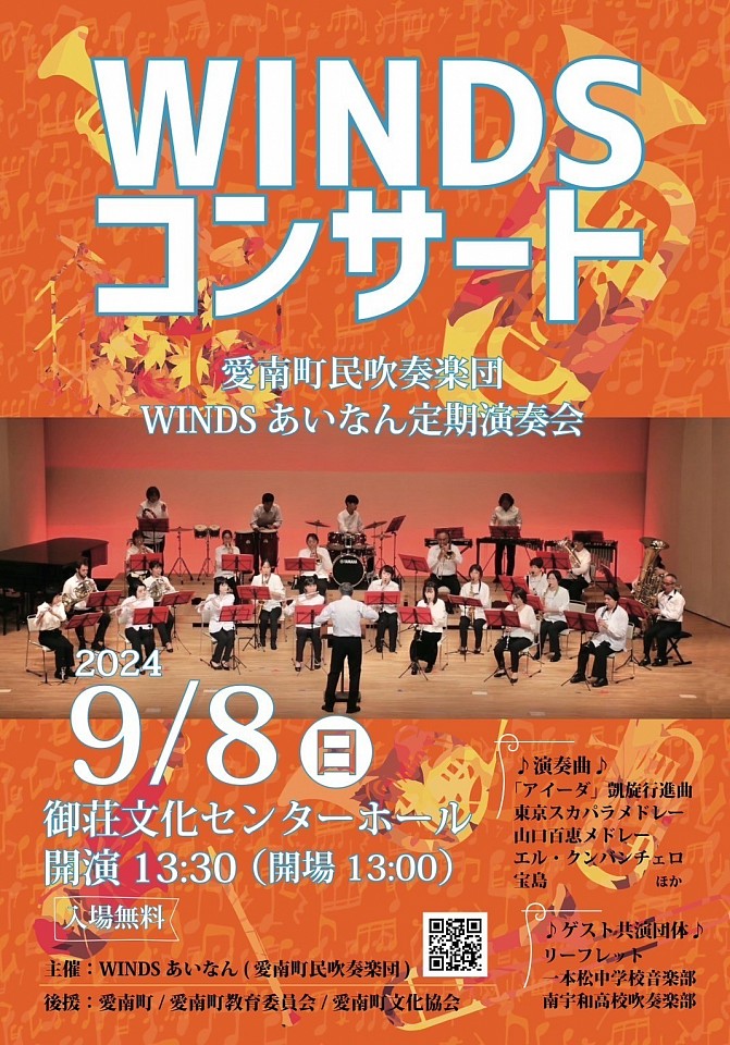 今年度の愛南町文化祭が、11月8日(土)、9日(日)に開催され、愛南町民吹奏楽団も9日(日) 10:00より出演します!